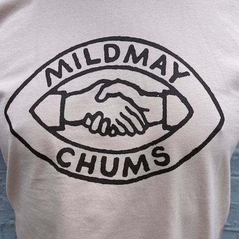 The rare "Mildmay Chums" logo has been found on badges, picture, plaques and a super rare Mildmay Chums party night ticket (to buffet, dinner and dance on 7th October 1983) that was found recently. A visitor to the club who came to the Hackney Society Talk and Tour handed this ticket to Kat, one of the committee members and archivists. The gentleman told us he had been sorting through his recently deceased grandad's effects and found this ticket in a suit pocket! We reckon it must have been a great night out, especially with the band "Malibou" providing the sounds. We loved the ticket so we took the hand drawn "chums" logo from it and had it screenprinted onto a dusty pink 100% organic and supremely high quality "Earth Positive" cotton tee. So be quick! Please look at the size chart below so you get the right size. As mentioned, the tee is a charming shade of dusty / blush pink, so not really a vivid pink, pink, and the print is a brown. Looks superb! VERT LIMITED - JUST 15 IN TOTAL MADE. Please check size chart below before you buy!